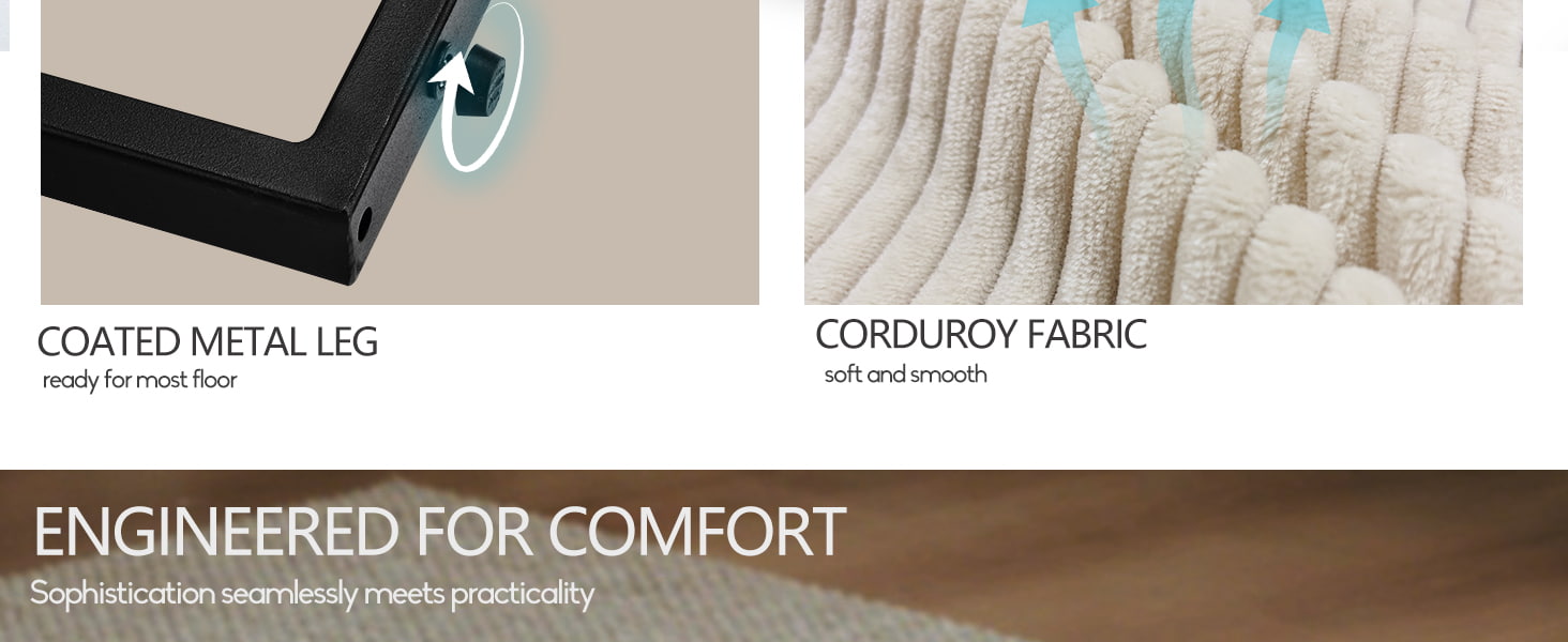 ● طراحی مناسب برای کف: میخ های قابل تنظیم پا با کلاه های لاستیکی از کف ها محافظت می کند و صندلی را روی سطوح ناهموار ثابت نگه می دارد.