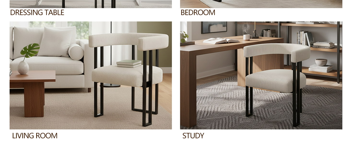 این صندلی با فوم با انعطاف پذیری بالا پر شده است که شکل خود را در طول زمان حفظ می کند و پشتیبانی قابل اعتمادی را ارائه می دهد، چه در میز ناهار خوری، میز آرایش یا میز اداری خانگی استفاده شود. یک تکیه گاه U شکل با طراحی متفکرانه، پشتیبانی ارگونومیکی را برای کمر و پشت فراهم می کند و به کاهش خستگی در هنگام نشستن طولانی کمک می کند.