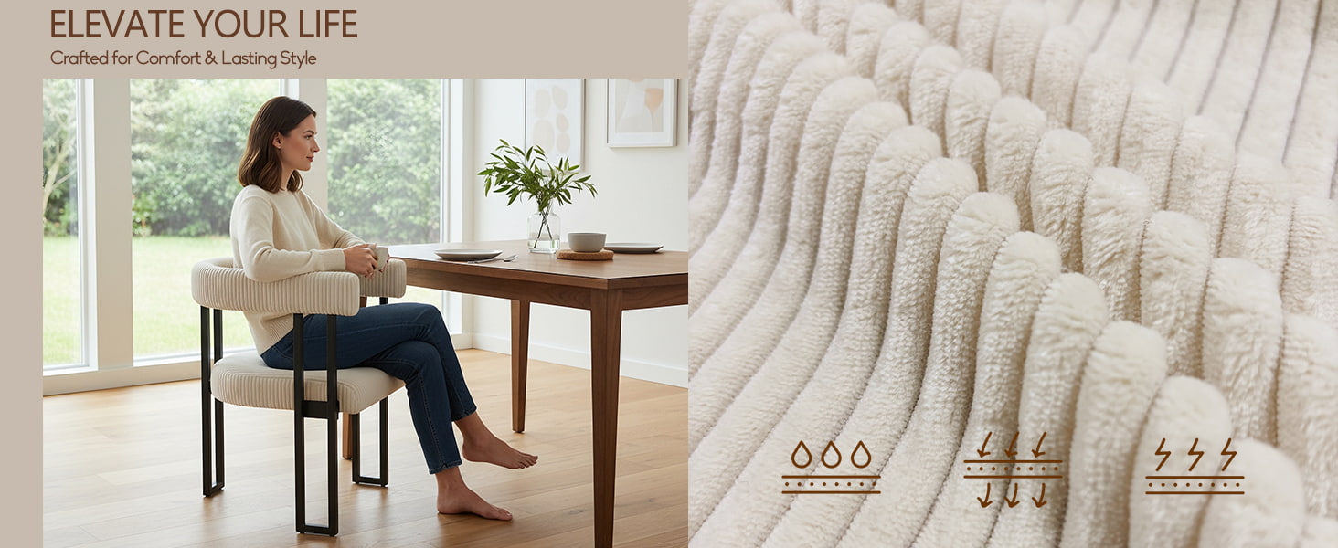 اثاثه یا لوازم داخلی مخملی مخملی: پارچه بند ناف با لمس نرم، حس گرم و بافتی را ارائه می دهد در حالی که بادوام و نگهداری آسان است.