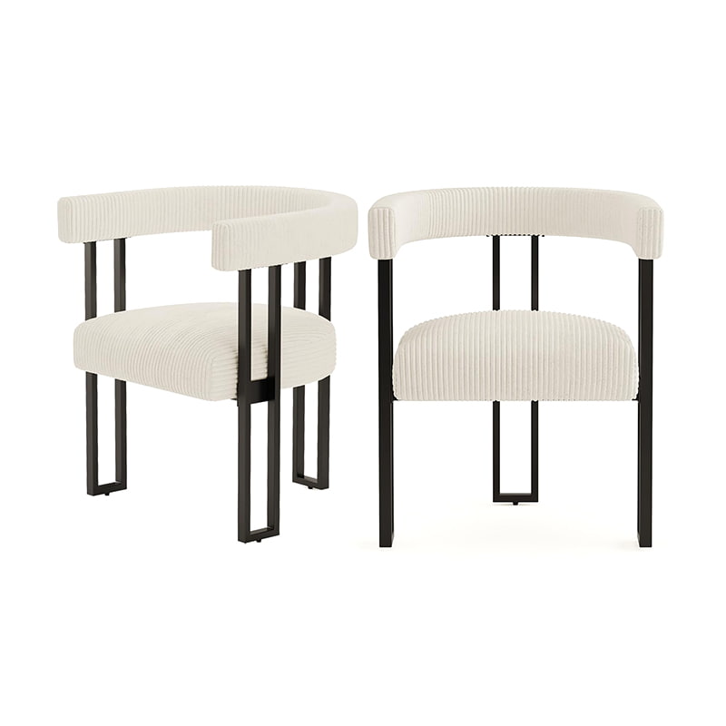 این صندلی ناهارخوری با پایههای فلزی با روکش محکم با پدهای ضد لغزش قابل تنظیم پشتیبانی میشود و در عین حال از کفهای شما محافظت میکند. با سیلوئت تمیز وسط قرن و رنگ سفید خنثی خود، بدون دردسر در اتاق های غذاخوری، آشپزخانه، اتاق نشیمن، اتاق خواب یا فضاهای مطالعه ترکیب می شود.