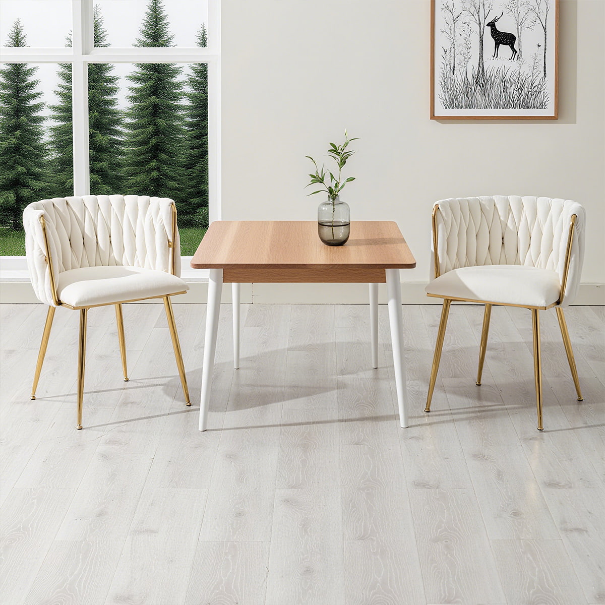 صندلی ناهار خوری با روکش مخملی عاج – صندلی پشتی بافته شده مدرن با پایه های فلزی طلایی، صندلی کناری نیمه قرن برای اتاق غذاخوری، اتاق نشیمن، آشپزخانه یا روشویی