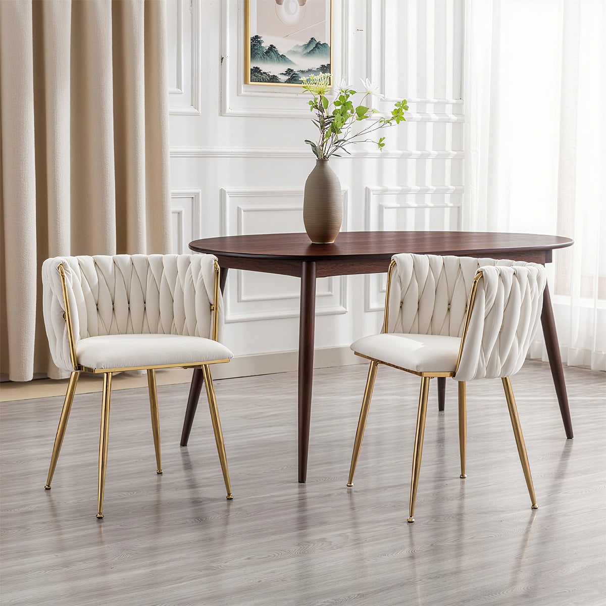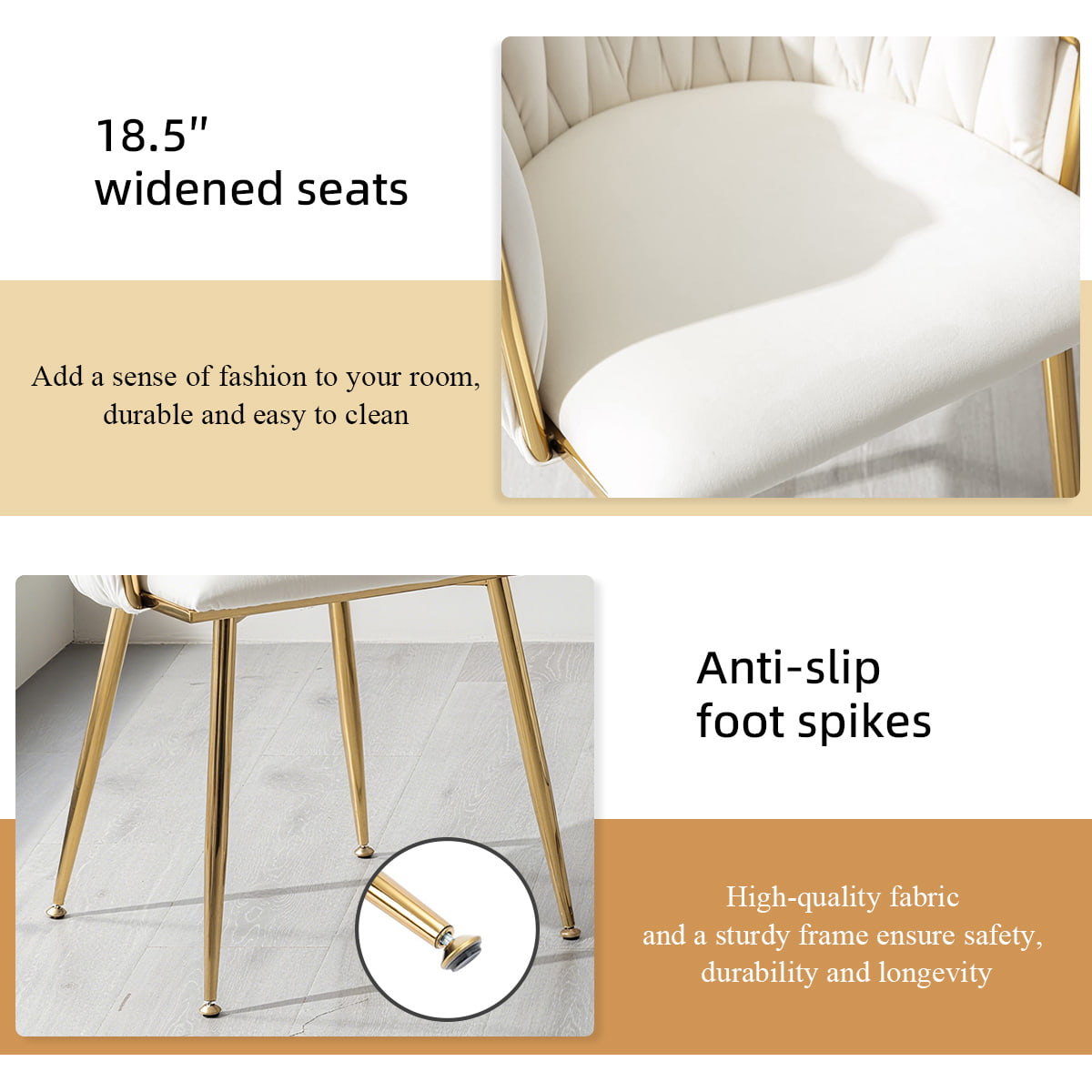 این صندلی ناهار خوری با روکش مخملی عاج با تکیه گاه بافته شده، یک صندلی همه کاره با لهجه مدرن، صندلی روشویی، و صندلی بغل اواسط قرن است. دارای پارچه مخملی لوکس، پایه های فلزی طلایی، پشتی ارگونومیک و بالشتک های فوم با چگالی بالا، برای راحتی و سبک طراحی شده است. ایده آل برای اتاق ناهار خوری، اتاق نشیمن، اتاق خواب، اتاق روشویی، دفاتر، کافه ها و هتل ها، نیازهای کاربران خانگی و خریداران تجاری را برآورده می کند.