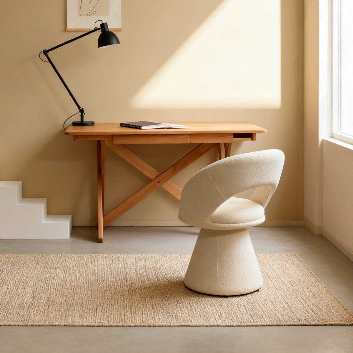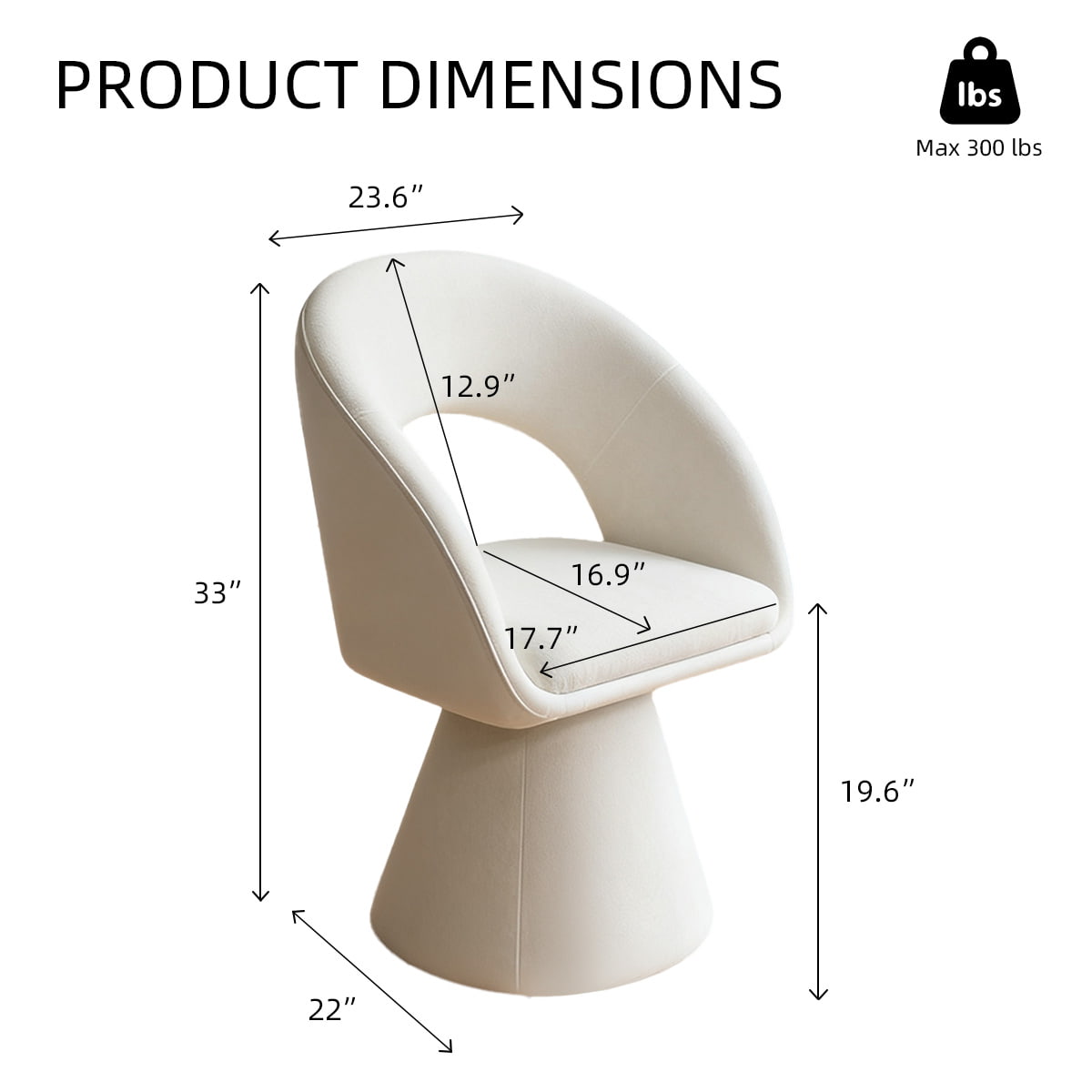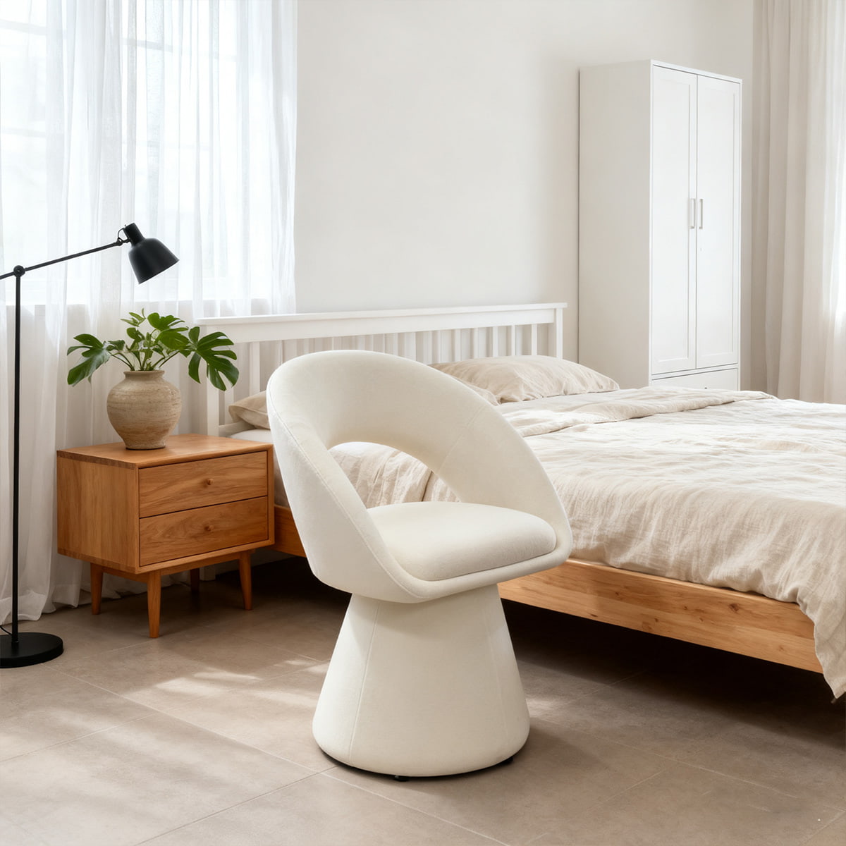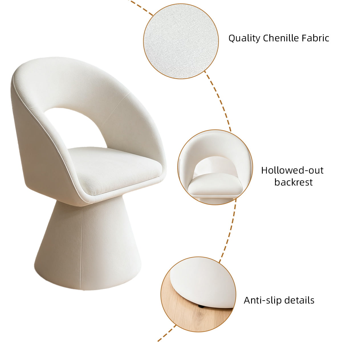 صندلی چرمی کرمی با طرح منحنی مدرن و سفید تدی مخملی – صندلی ناهارخوری و تفریحی روکش دار چرخشی 360 درجه با پشتی توخالی