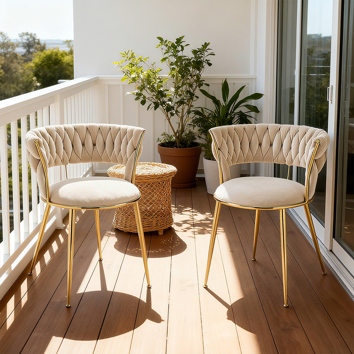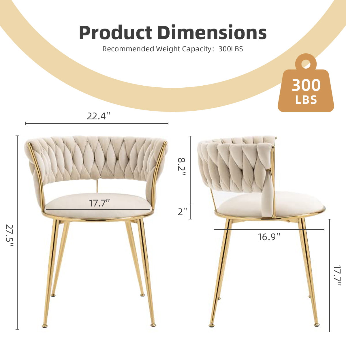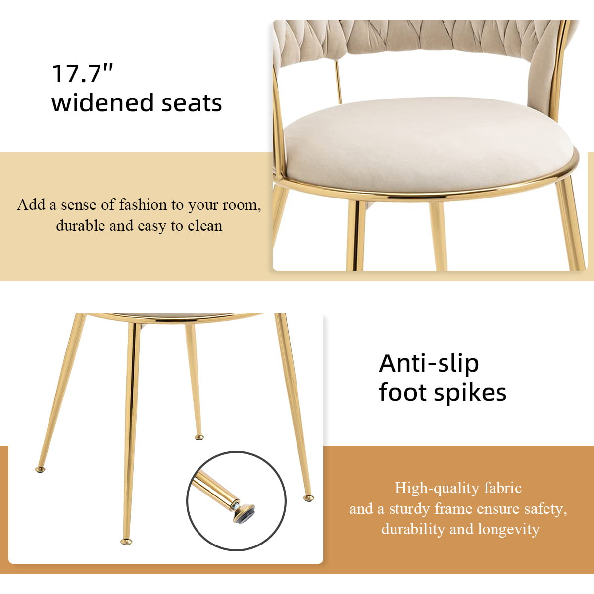 صندلی ناهار خوری مخملی عاج مدرن با پشتی بافته شده و پایه های فلزی طلایی - صندلی اثاثه یا لوازم داخلی زیبا برای اتاق غذاخوری، آشپزخانه یا فضای نشیمن