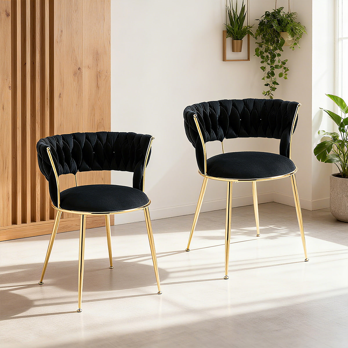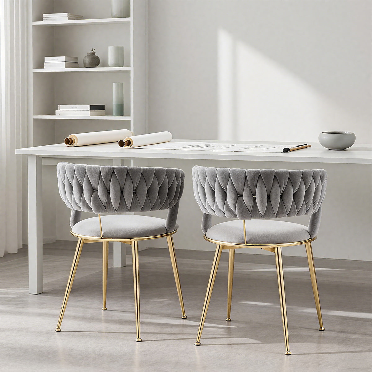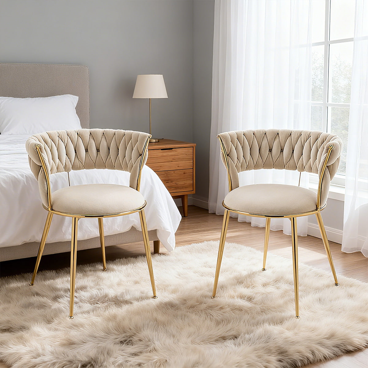 صندلی ناهار خوری مخملی عاج مدرن با پشتی بافته شده و پایه های فلزی طلایی - صندلی اثاثه یا لوازم داخلی زیبا برای اتاق غذاخوری، آشپزخانه یا فضای نشیمن
