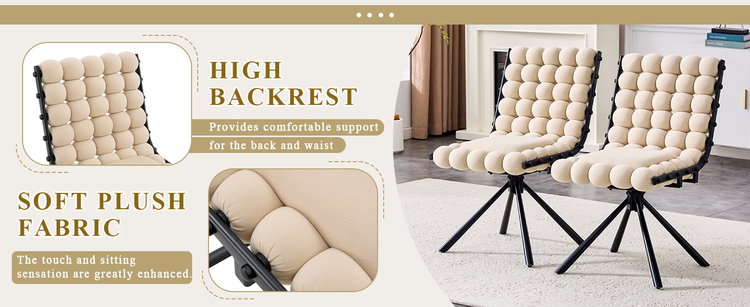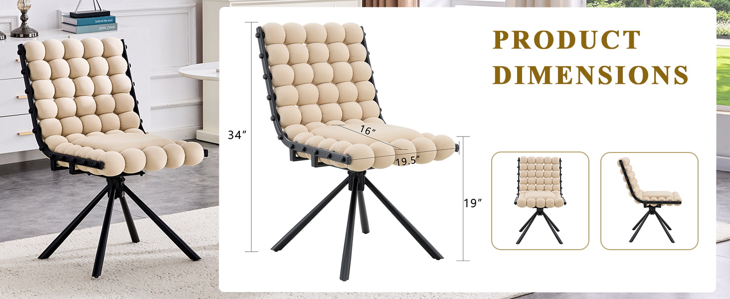 صندلی ناهار خوری مخملی چرخان با پشت کوسن حباب دار، صندلی روکش دار با پایه های فلزی (بدون چرخ)