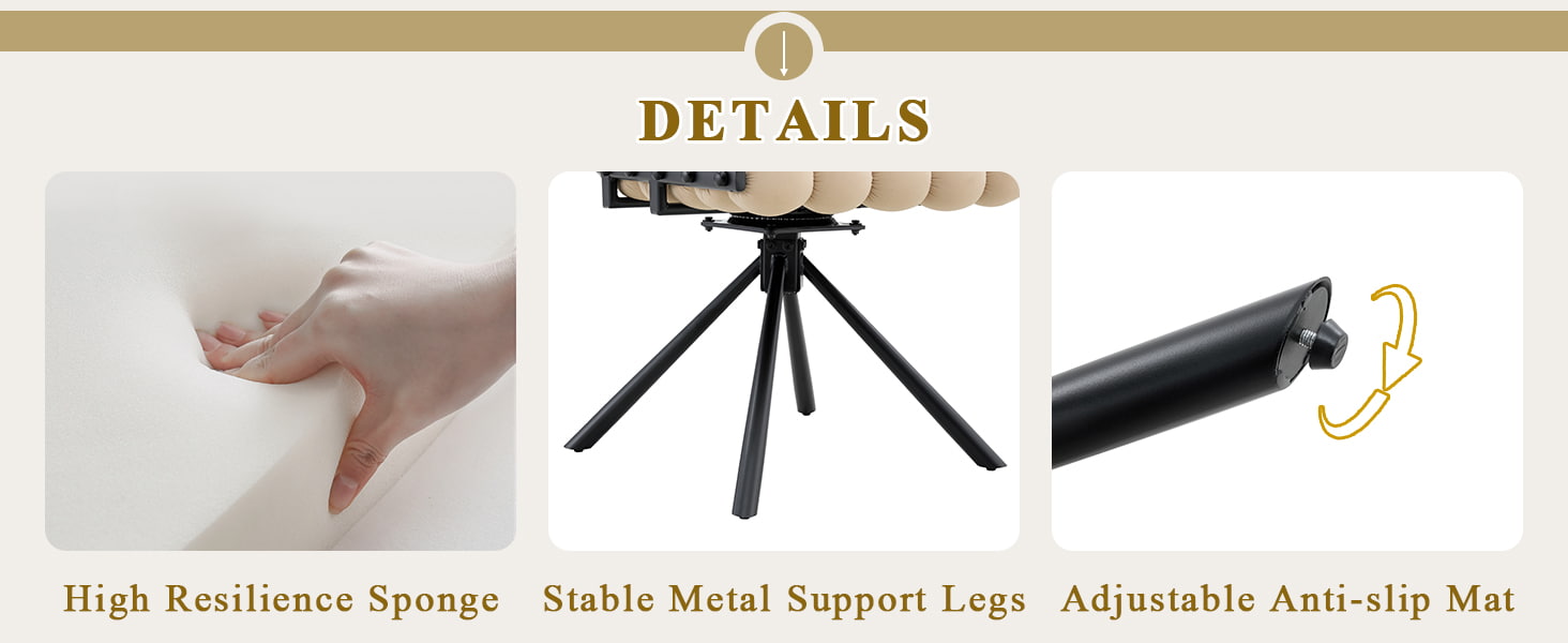 این صندلی ناهار خوری گردان مخملی برای فضاهای غذاخوری مدرن، فضای داخلی سبک زندگی و محیط های تجاری بوتیک طراحی شده است. این صندلی با پشتی کوسن حبابدار مجسمهسازی و روکش مخملی هلندی صاف، طراحی چشمنواز را با راحتی روزمره ترکیب میکند. عملکرد چرخش 360 درجه امکان حرکت انعطاف پذیر را فراهم می کند، در حالی که پایه های فلزی محکم و پایه بدون چرخ، ثبات قابل اعتمادی را برای اتاق های غذاخوری، اتاق نشیمن، قسمت های آرایش و صندلی کافه فراهم می کند. پشتی منحنی ارگونومیک و بالشتک اسفنجی با انعطاف پذیری بالا به توزیع یکنواخت فشار بدن کمک می کند و در طول نشستن طولانی مدت پشتیبانی راحت را ارائه می دهد.