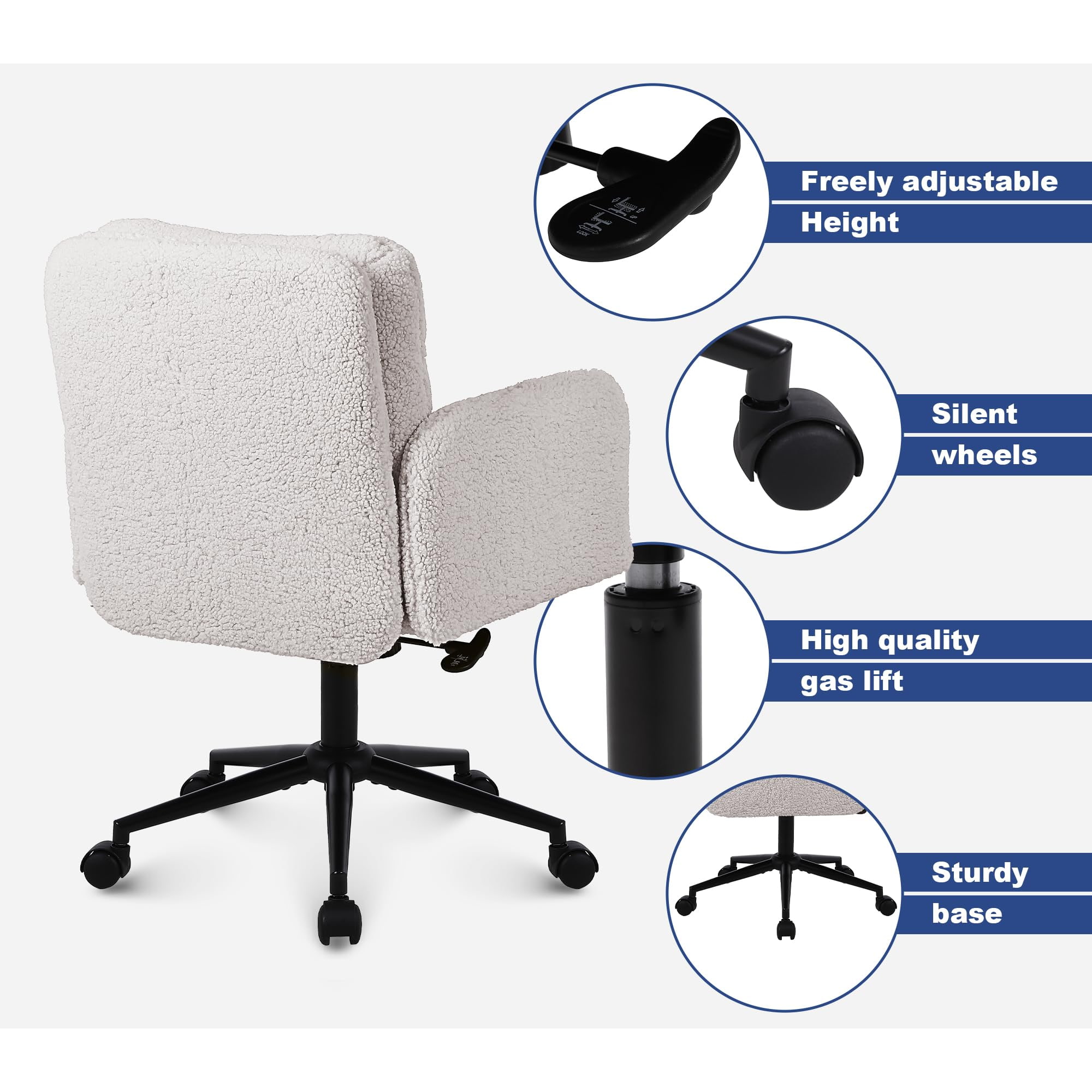 صندلی اداری قابل تنظیم ترمه مصنوعی با عملکرد چرخشی و چرخشی – صندلی رومیزی با روکش نرم برای استفاده در منزل و روشویی