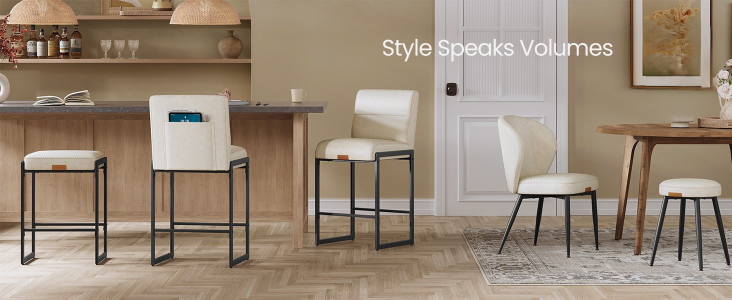 صندلیهای بار مدرن اواسط قرن که برای پیشخوان آشپزخانه و جزایر ناهار خوری طراحی شدهاند، این صندلیهای کرم سفید با ارتفاع کم دارای روکشهای چرم مصنوعی بادوام با دوختهای ظریف و یک قاب فلزی با معماری تمیز هستند. تکیه گاه ارگونومیک 103 درجه، صندلی بالشتکی با ضخامت 3.9 اینچ و لبه منحنی جلویی راحتی ماندگاری را برای نشستن طولانیتر فراهم میکند و آنها را هم برای آشپزخانههای مسکونی و هم برای محیطهای تجاری سبک مانند کافهها یا نمایشگاهها مناسب میکند.