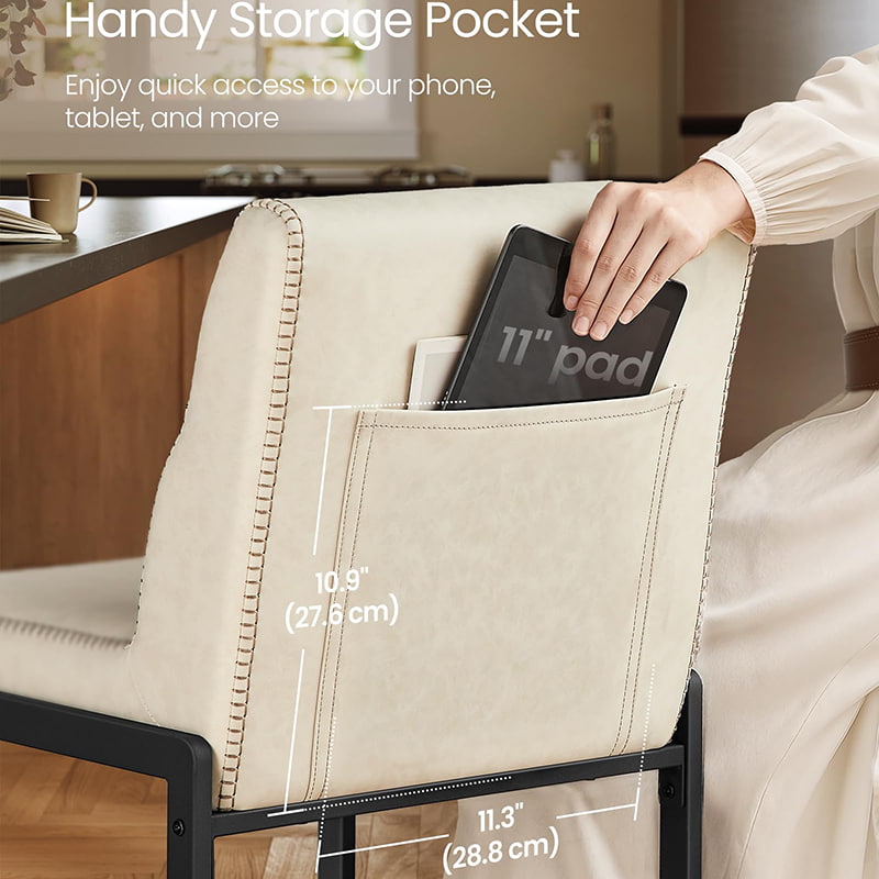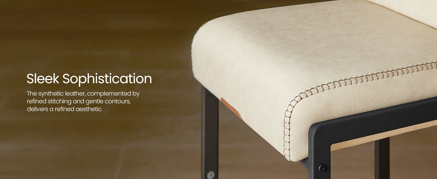 سطح چرم مصنوعی صاف با دوختهای ظریف با جزئیات طراحی شده است و ظاهری دستکاری شده را ارائه میکند و در عین حال نگهداری آن آسان است - ایدهآل برای خانههای شلوغ و مکانهای تجاری سبک. لبه صندلی با خمیدگی ملایم به کاهش فشار پا کمک می کند، در حالی که جیب پشتی یکپارچه فضای ذخیره سازی مناسبی را برای تلفن، تبلت یا وسایل ضروری کوچک اضافه می کند. این صندلی بار که توسط یک قاب فلزی محکم با پایههای قابل تنظیم مخفی پشتیبانی میشود، ثبات را بر روی سطوح مختلف کف تضمین میکند و بدون دردسر با آشپزخانههای مدرن، فضاهای غذاخوری یا مکانهای تفریحی معمولی سازگار میشود.