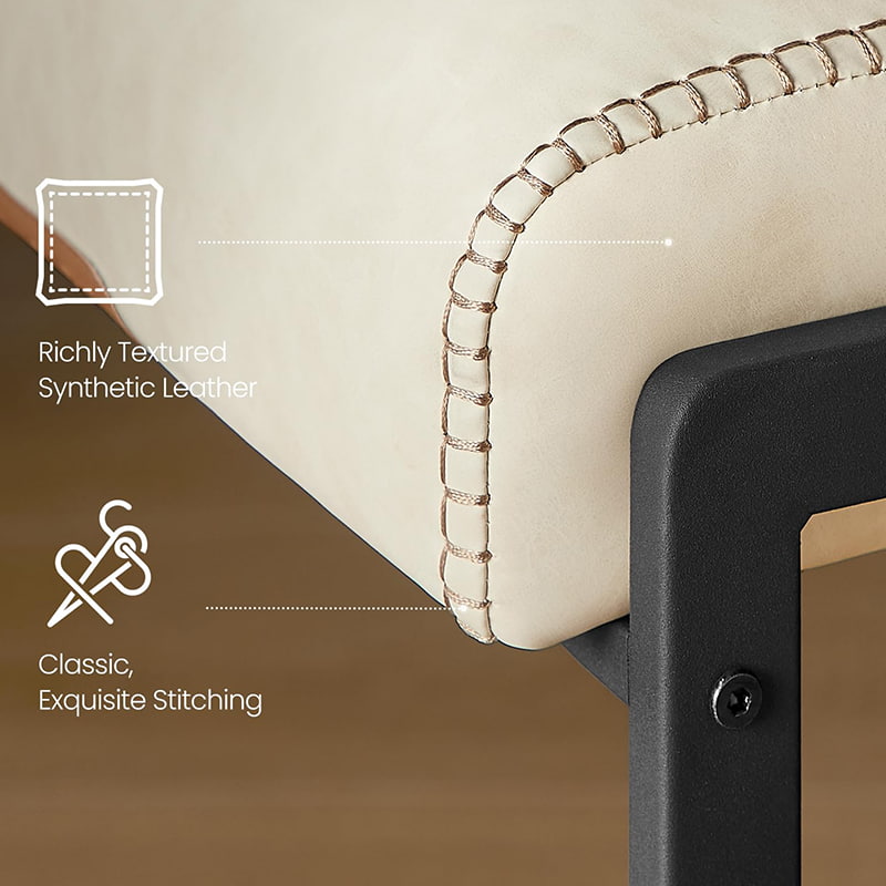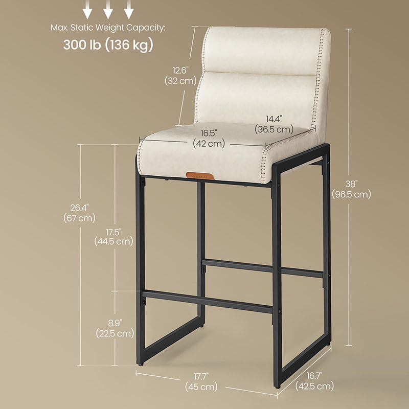 چهارپایه میله ای با ارتفاع پیشخوان با پشت، چرم مصنوعی کرم سفید، قاب فلزی مدرن میانه قرن