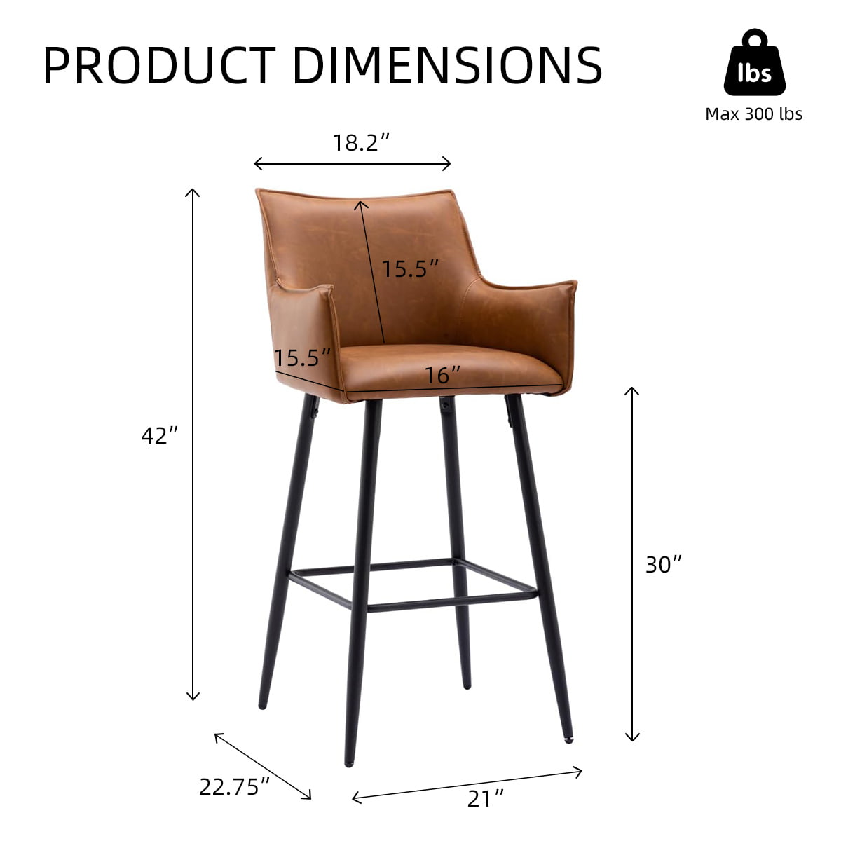 چهارپایه میله ای چرمی قهوه ای مدرن با تکیه گاه و پشتی - صندلی نواری روکش دار با ارتفاع جلو با پایه های فلزی مشکی برای جزیره آشپزخانه، اغذیه فروشی و مشروب فروشی، یا بار خانگی